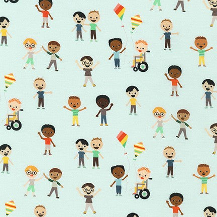 Bright Days - Petits garçons jouant ensemble - par Ann Kelle Designs pour Robert Kaufman - Bleu