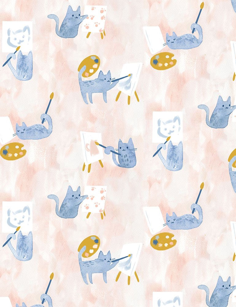 - Ce tissu présente des chats créatifs en classe de peinture. Que fais-tu pour rester occupé?