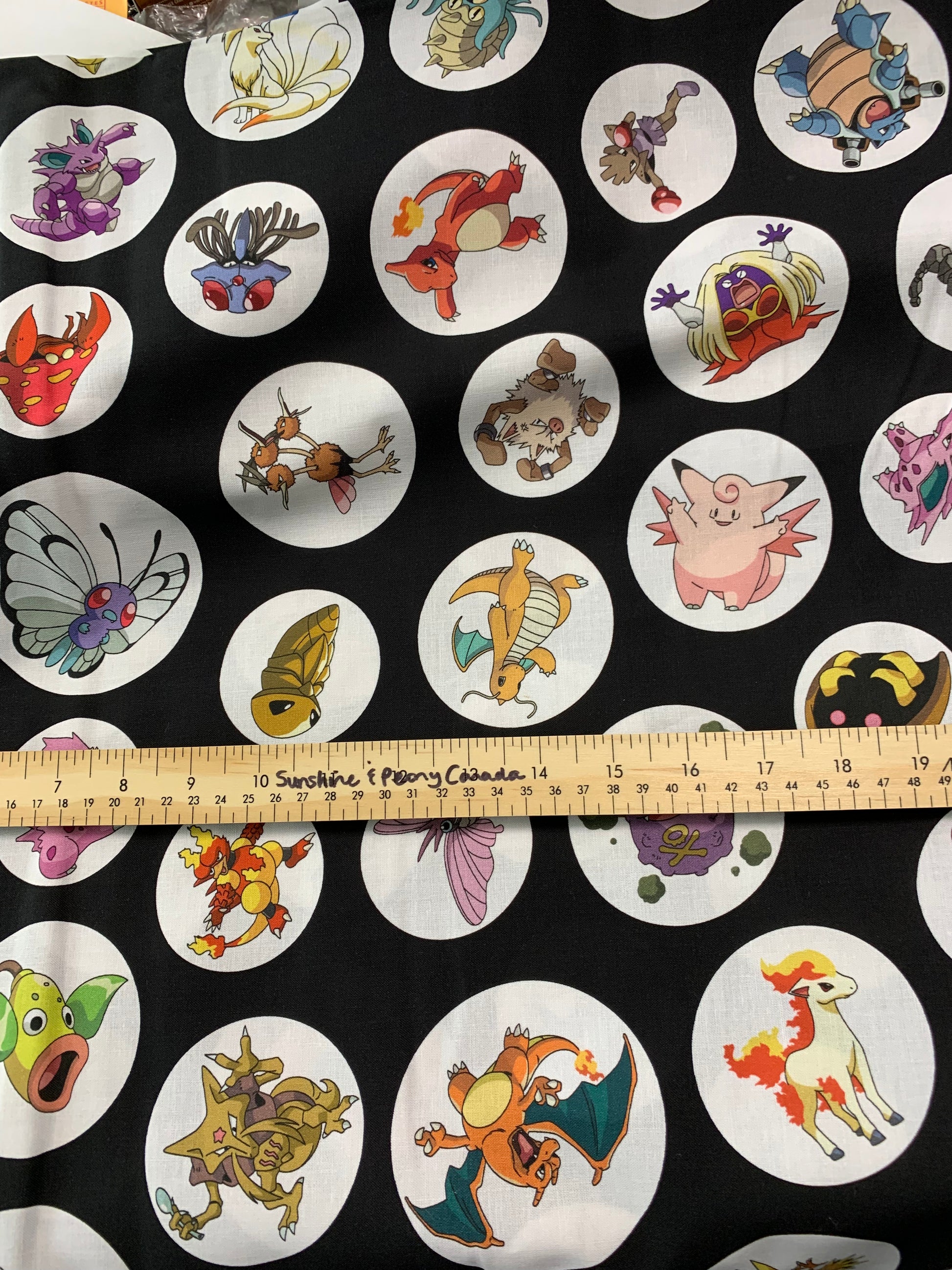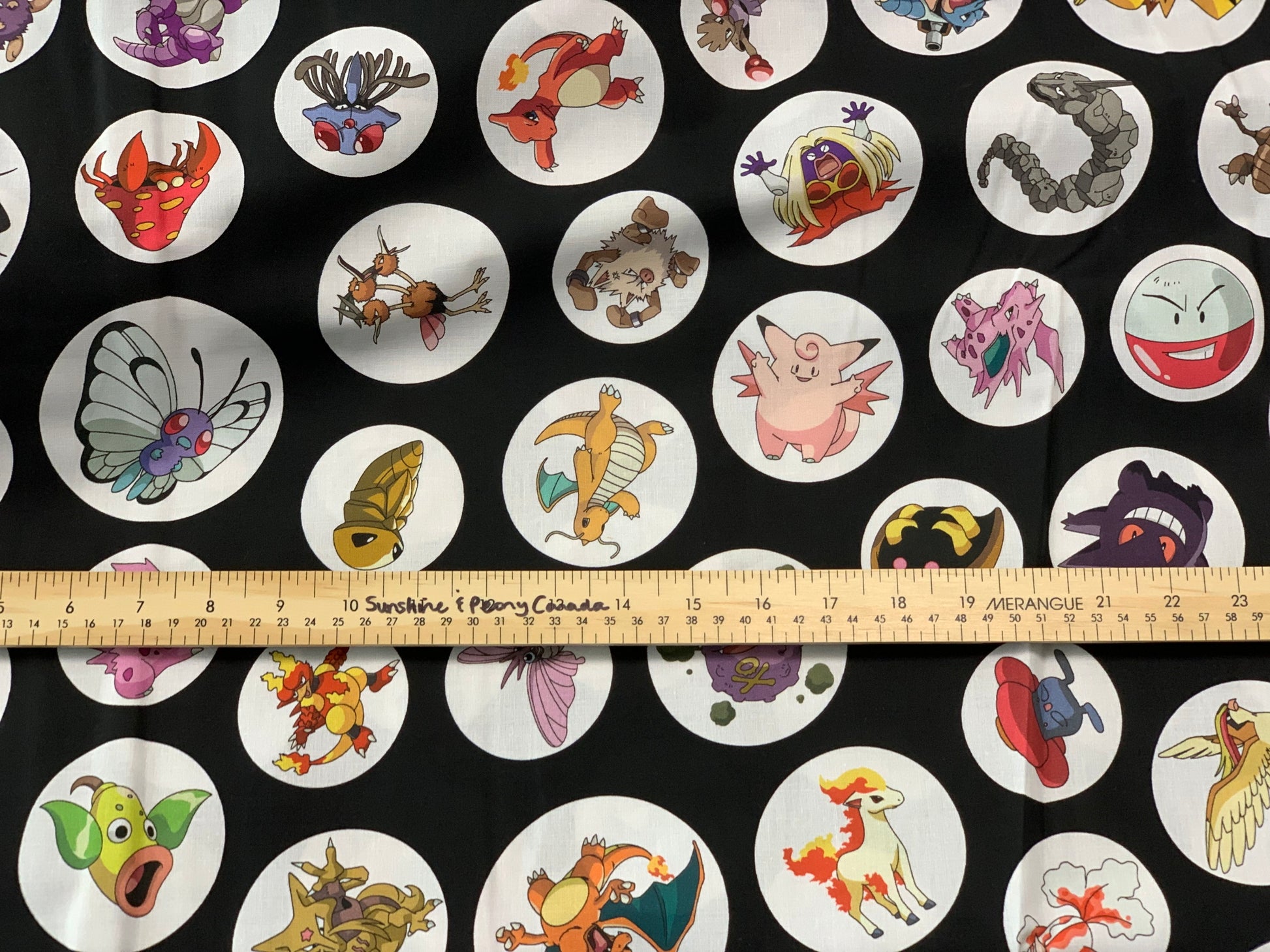 Pokémon en cercles - Noir - Tissus Robert Kaufman