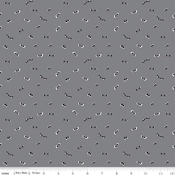 Riley Blake - Spooky Hollow - Globes oculaires - Gris - Brille dans le noir