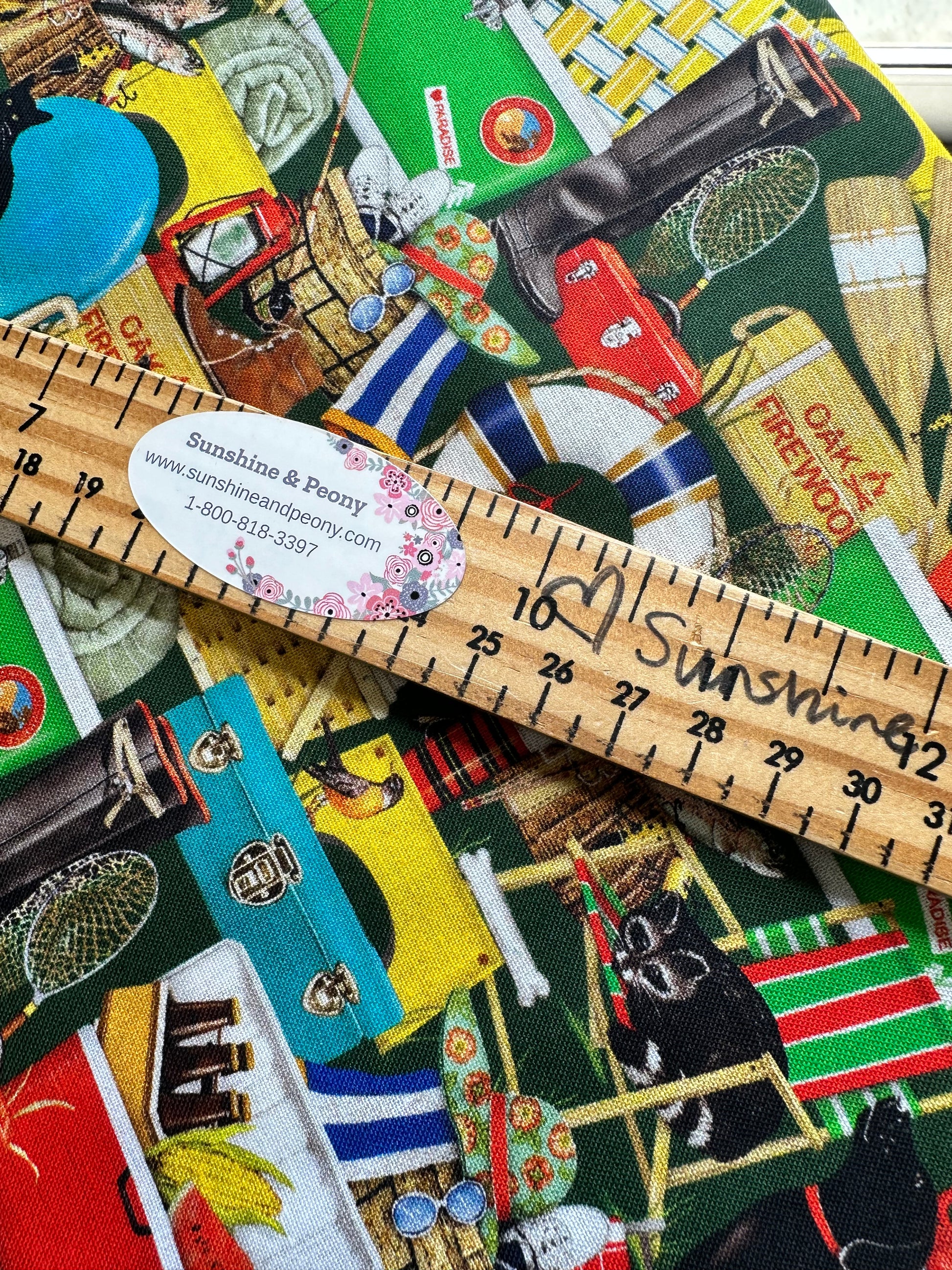 Robert Kaufman Fabrics - Lake House by Mary Lake Thompson for Robert Kaufman - Lagoon Fly Toss - Lures on Blue - Priced per half metre
