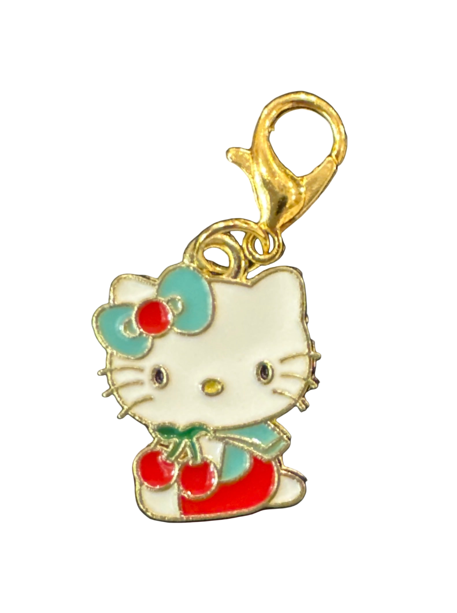 Stitch Marker/Zipper Pull - Charm - Cute Kitty - with floral and cherries