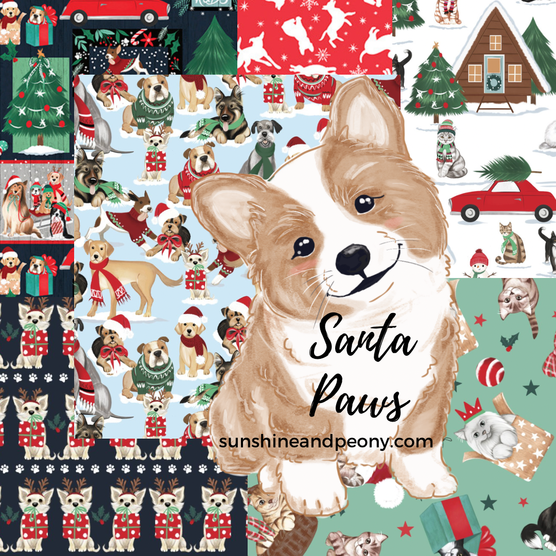 Last cut from bolt - 28.5" x width of fabric - 3 Wishes Fabric - Santa Paws - Tossed Silhouettes - Red Pups - Blue