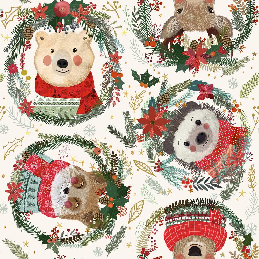 Part of the adorable new collection by Mia Charro for Freespirit Fabrics. This fabric features your favorite festive woodland animals.