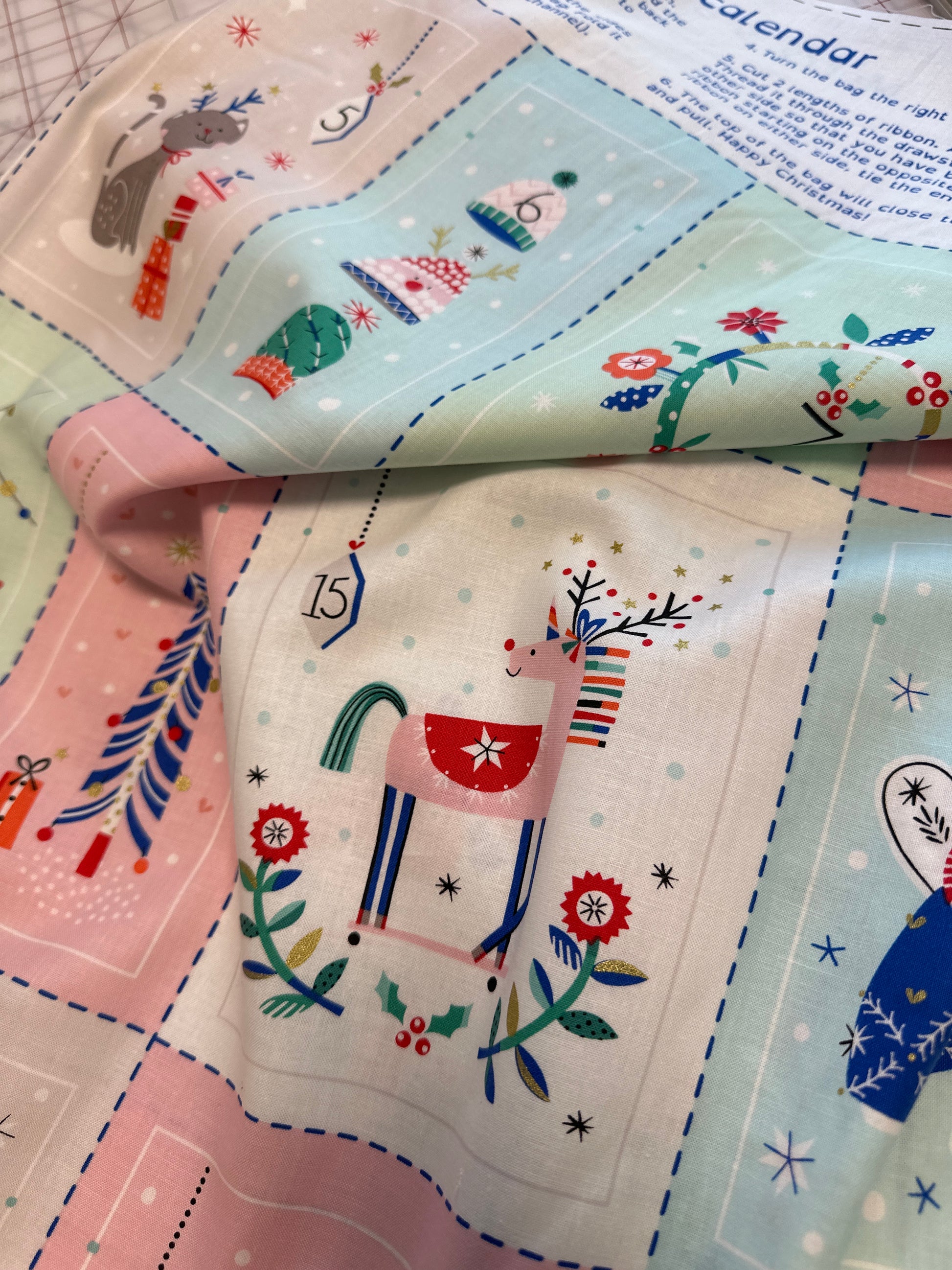 Makes 24 drawstring advent bags (Instructions included on fabric)