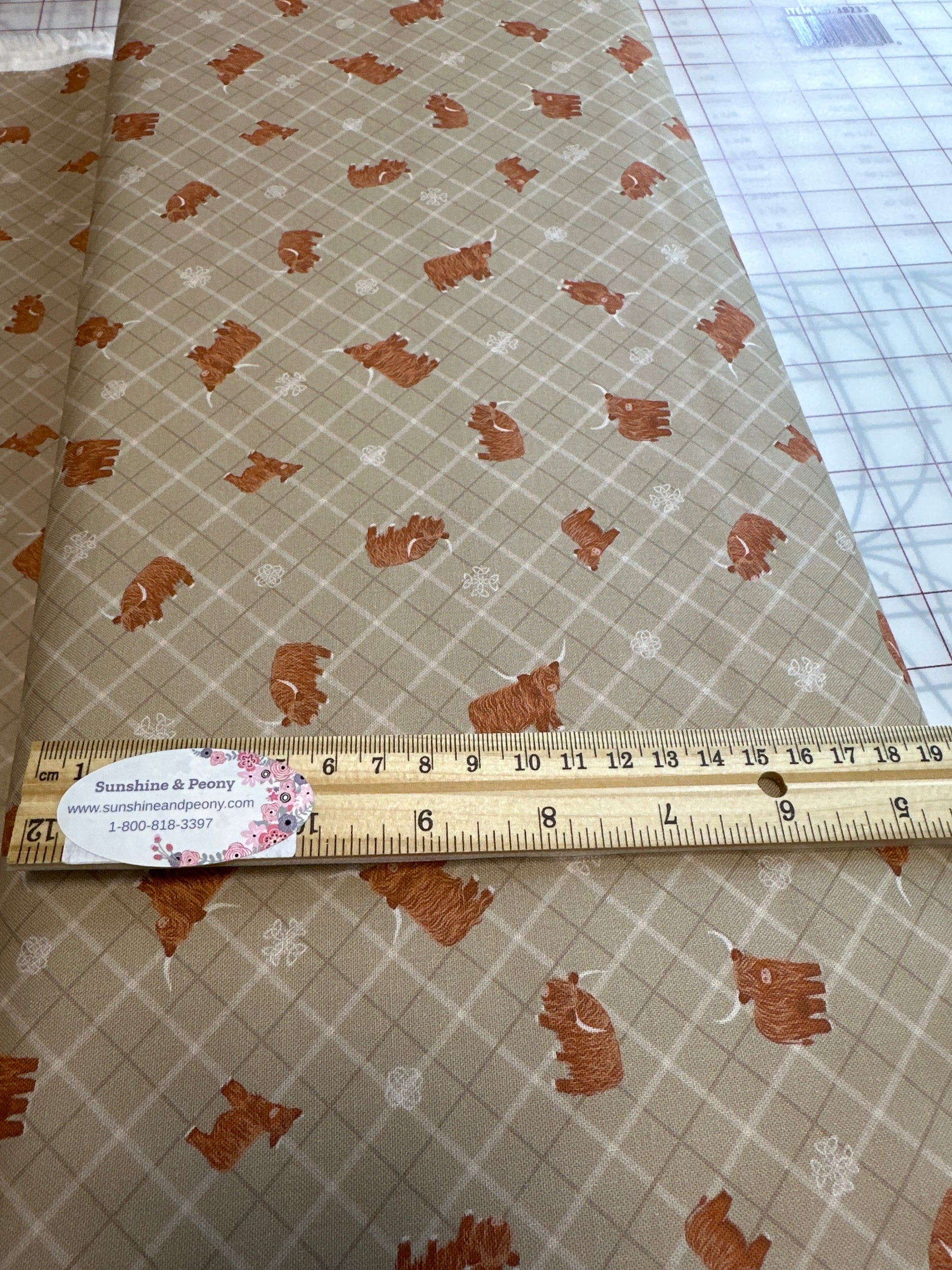 This fabric features the highly requested Highland Cow. If you have been looking for a fabric that features this lovely cow, then now is the time to order!