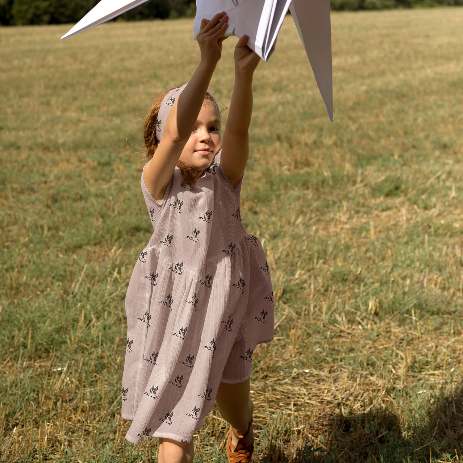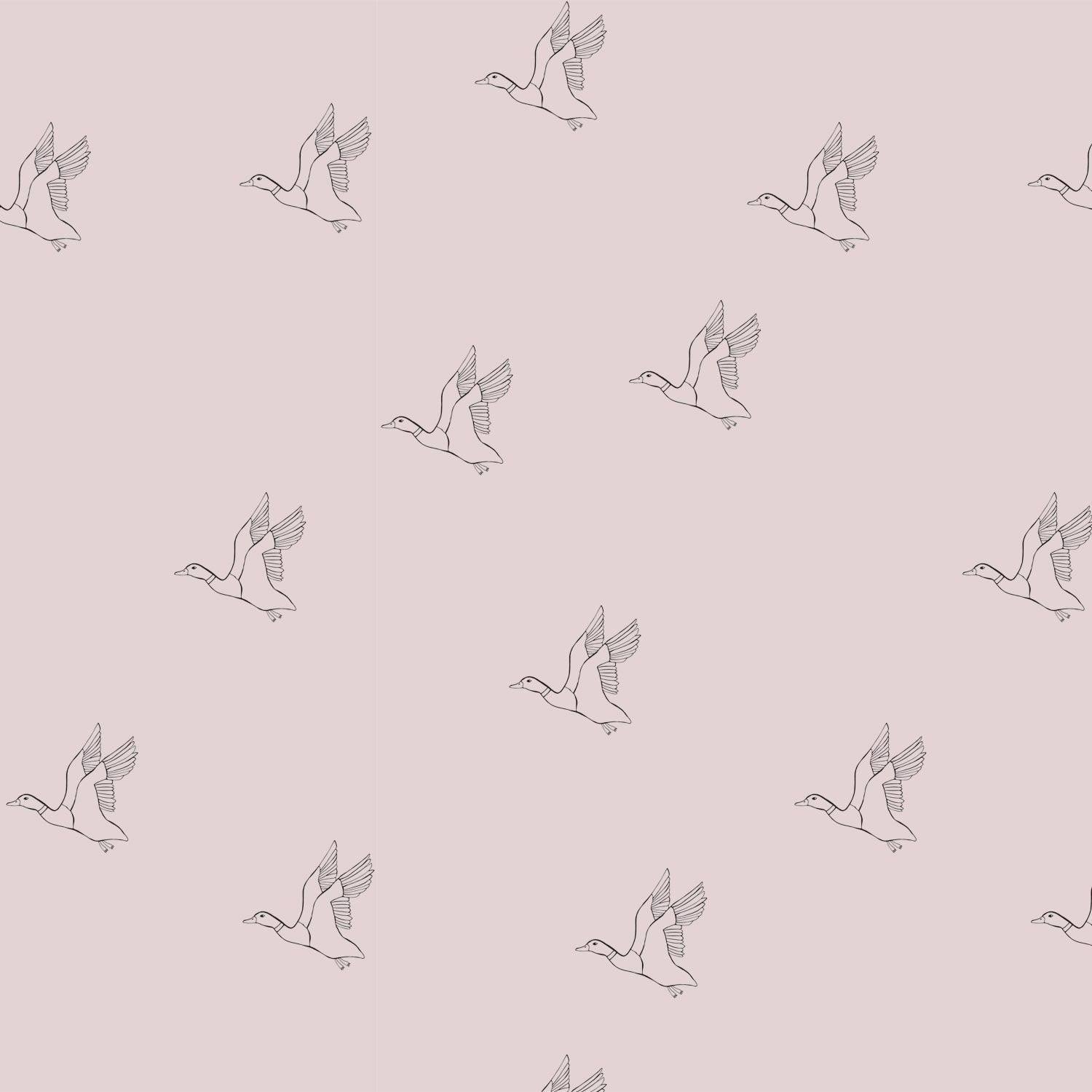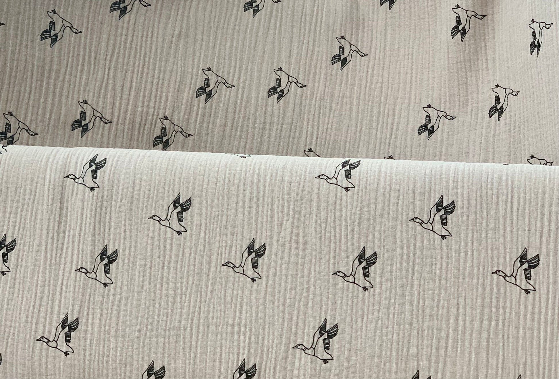 - 100% cotton muslin featuring the majestic formation of geese whilst flying, on a dusty rose background.