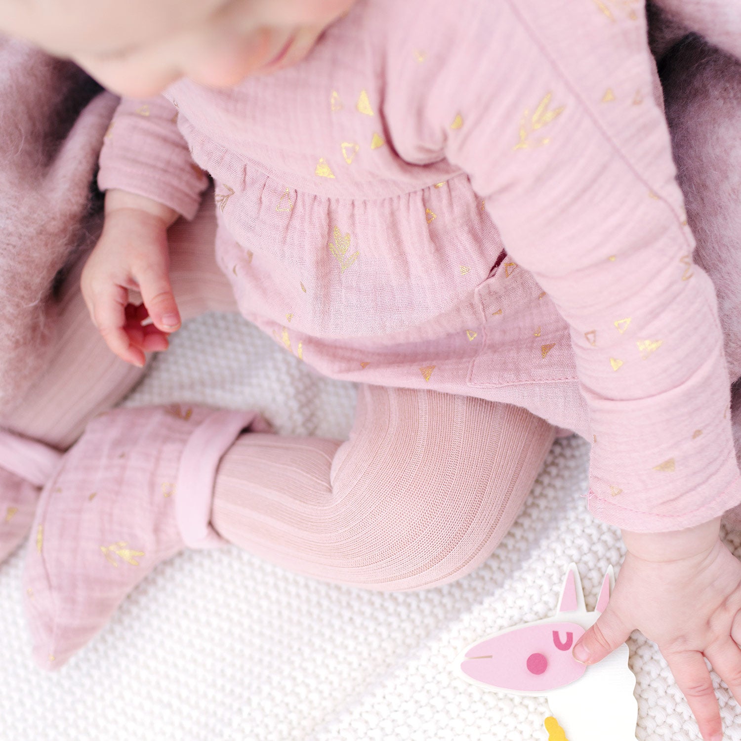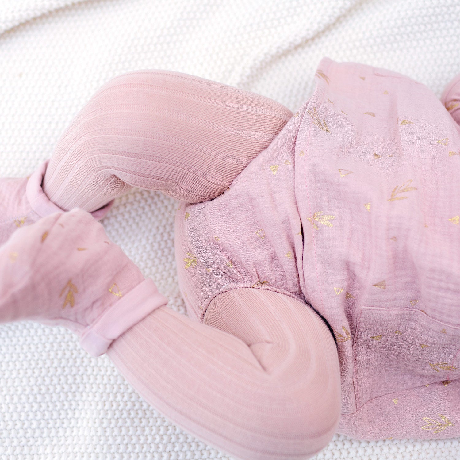 100% cotton fabric with a gold plant print design on a rosewood coloured background. This is a very soft, double layer fabric with a pleasant handle. Ideal for making kids and baby clothing and accessories.