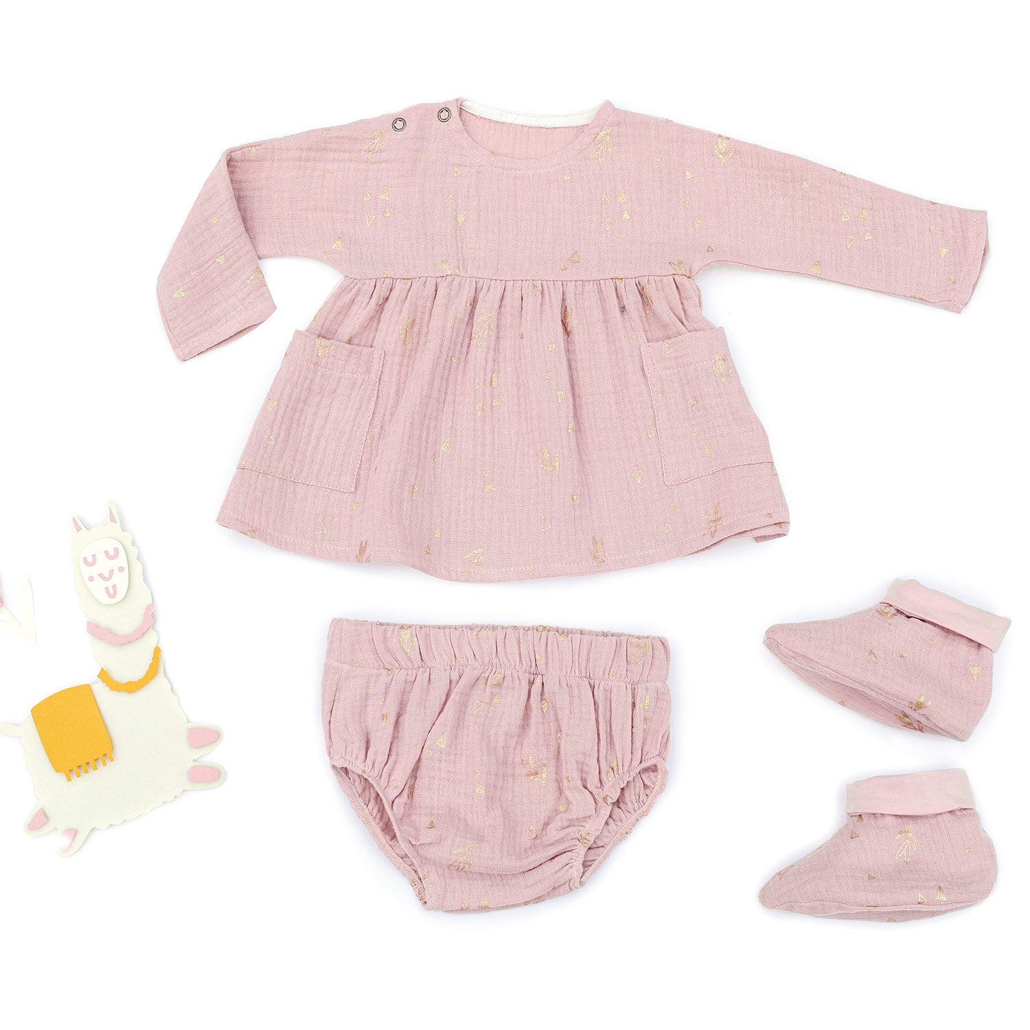 Katia - Mousseline Gold Line - Double Gauze - Gold flowers and triangles - Gold Metallic