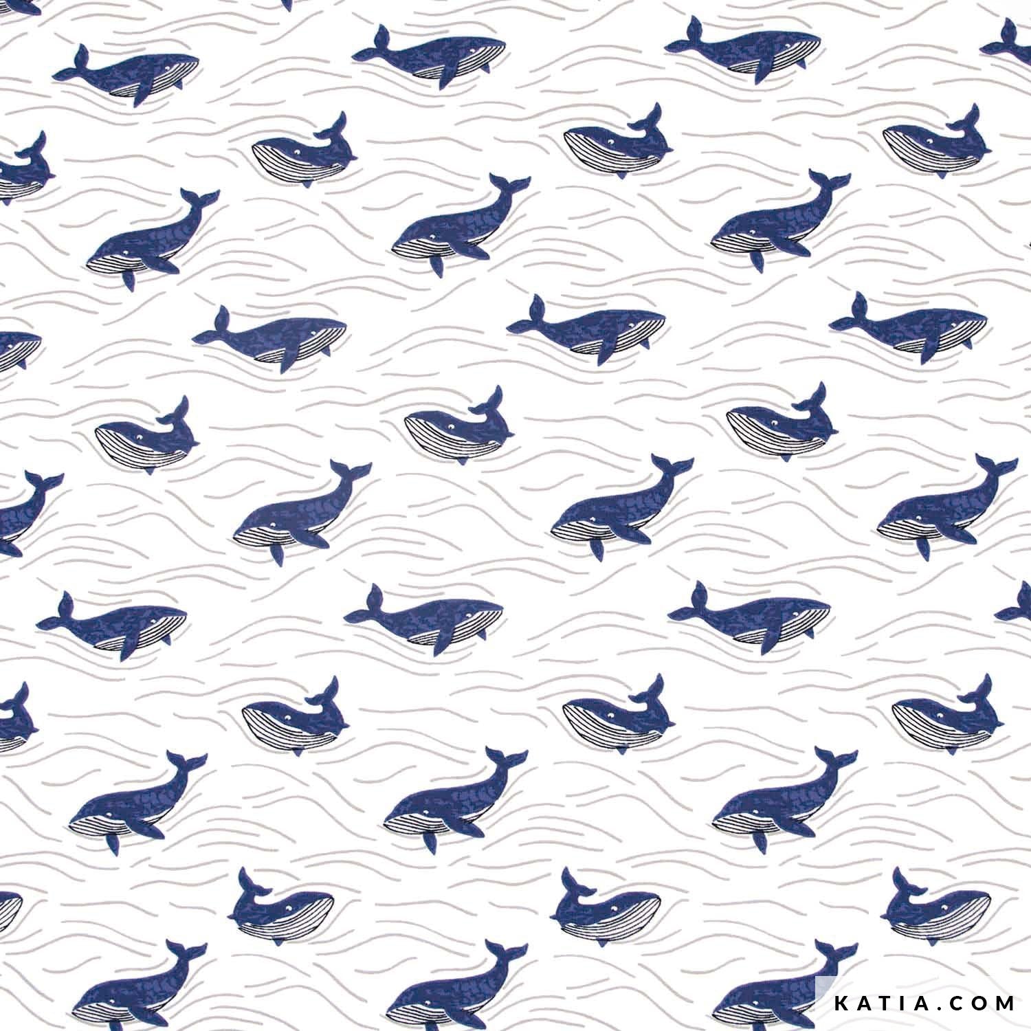 This knitted cotton fabric features a fun whale print design and has 5 % elastane in its composition that results in a fabric with extra comfort and flexibility. The Jersey Whales knitted t-shirt fabric, by Katia Fabrics, is a comfortable, soft and pleasant fabric to wear. This makes it an ideal choice for creating comfortable garments for everyone, including babies, kids and adults. Sew comfortable dresses, t-shirts or trousers with this knitted t-shirt type fabric this spring/summer.