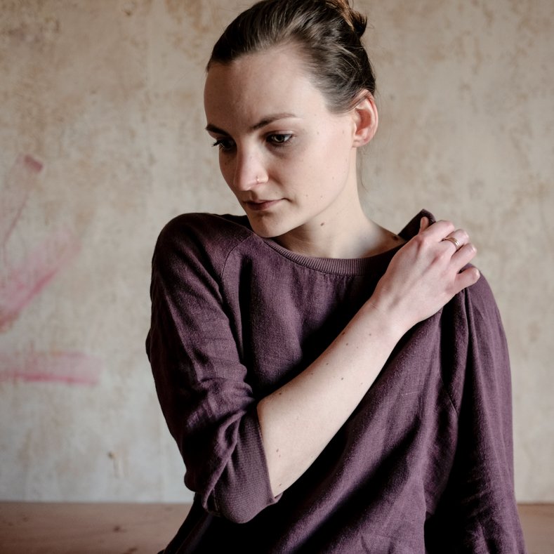 The Fielder dress and top is based on a traditional sweatshirt, featuring three quarter length raglan sleeves and inseam side pockets.