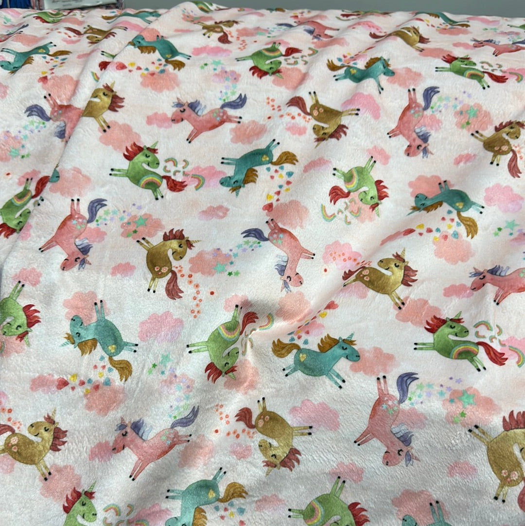 Beautiful lightweight Pink minky adorned with unicorns - perfect for your next project