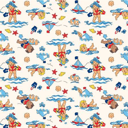 This fabric features various scenes with vintage beach babies, sailboats and adorable puppies