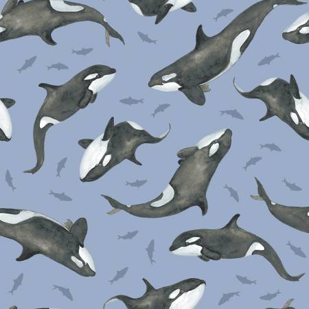 Studio E - Orcas - Blue - Part of the Polar Plungers Collection by Beth Reed - Priced per half metre