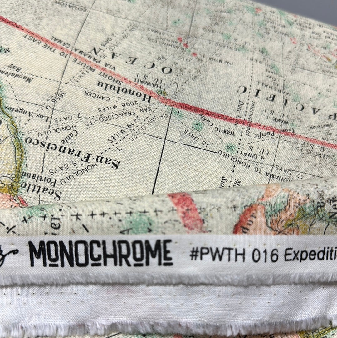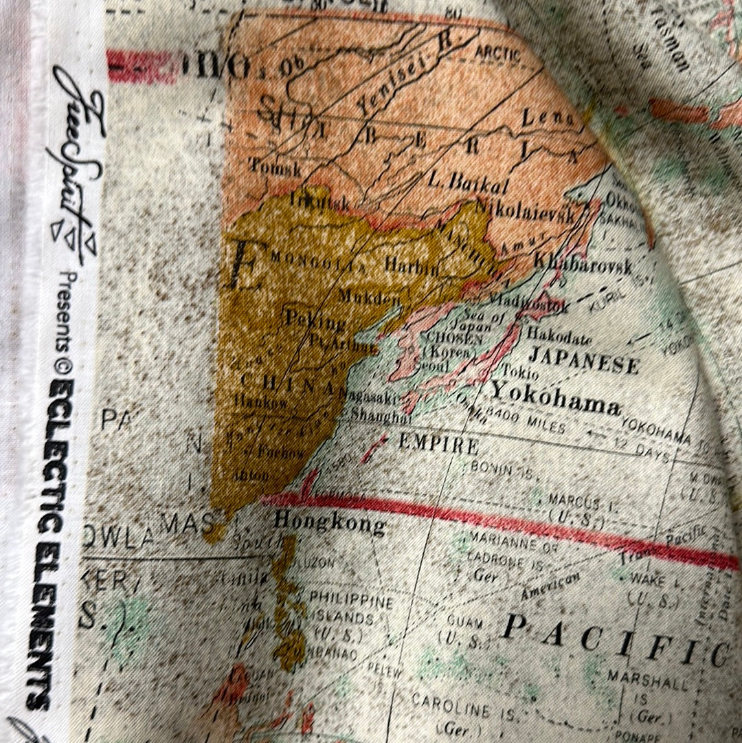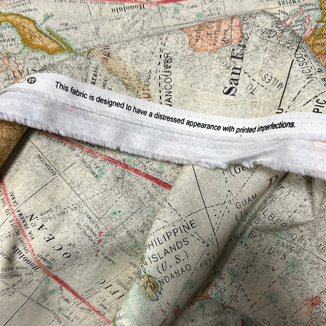 This fabric belongs to the Foundations collection by Tim Holtz for Free Spirit Fabrics and features vintage map elements.