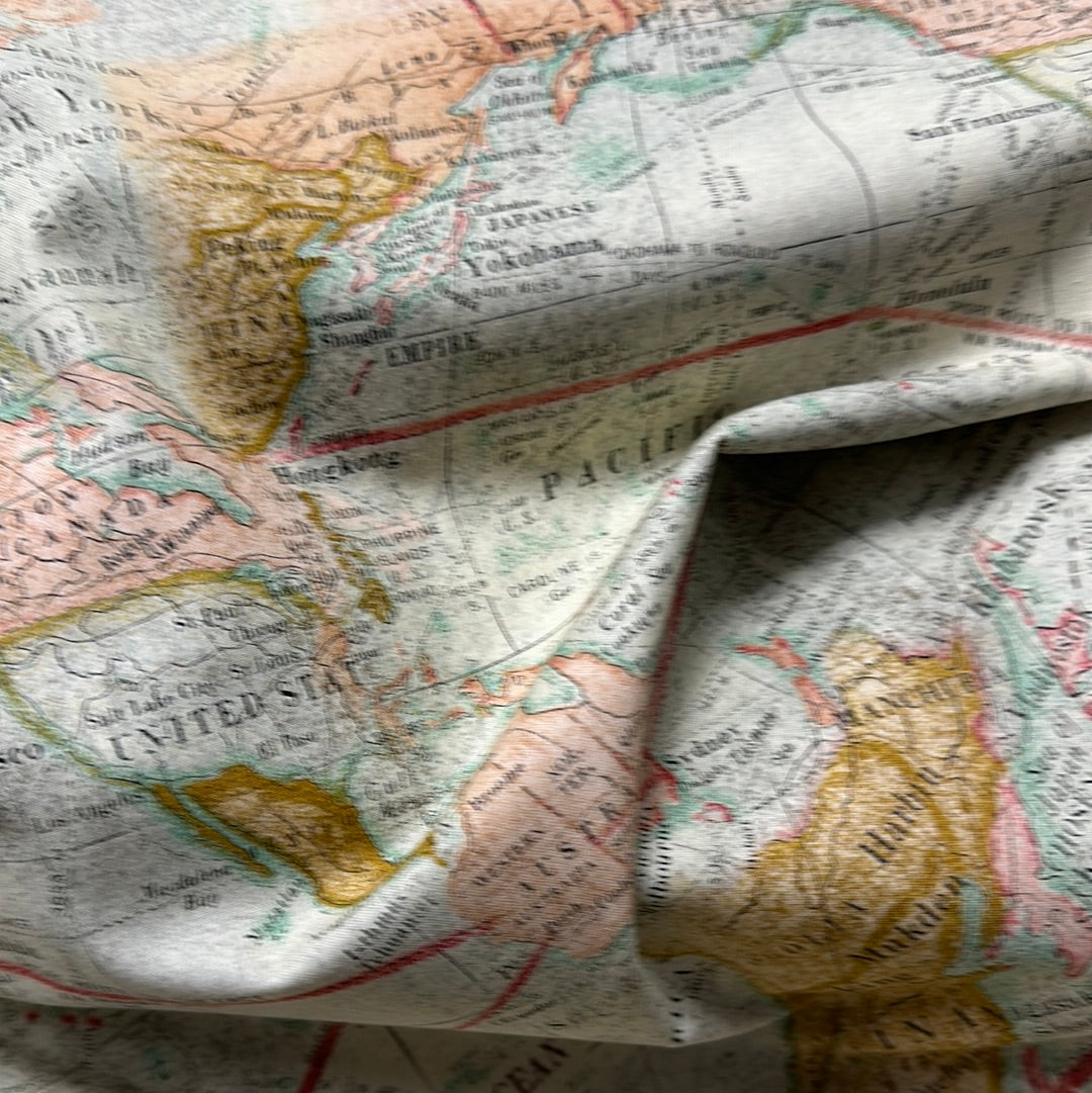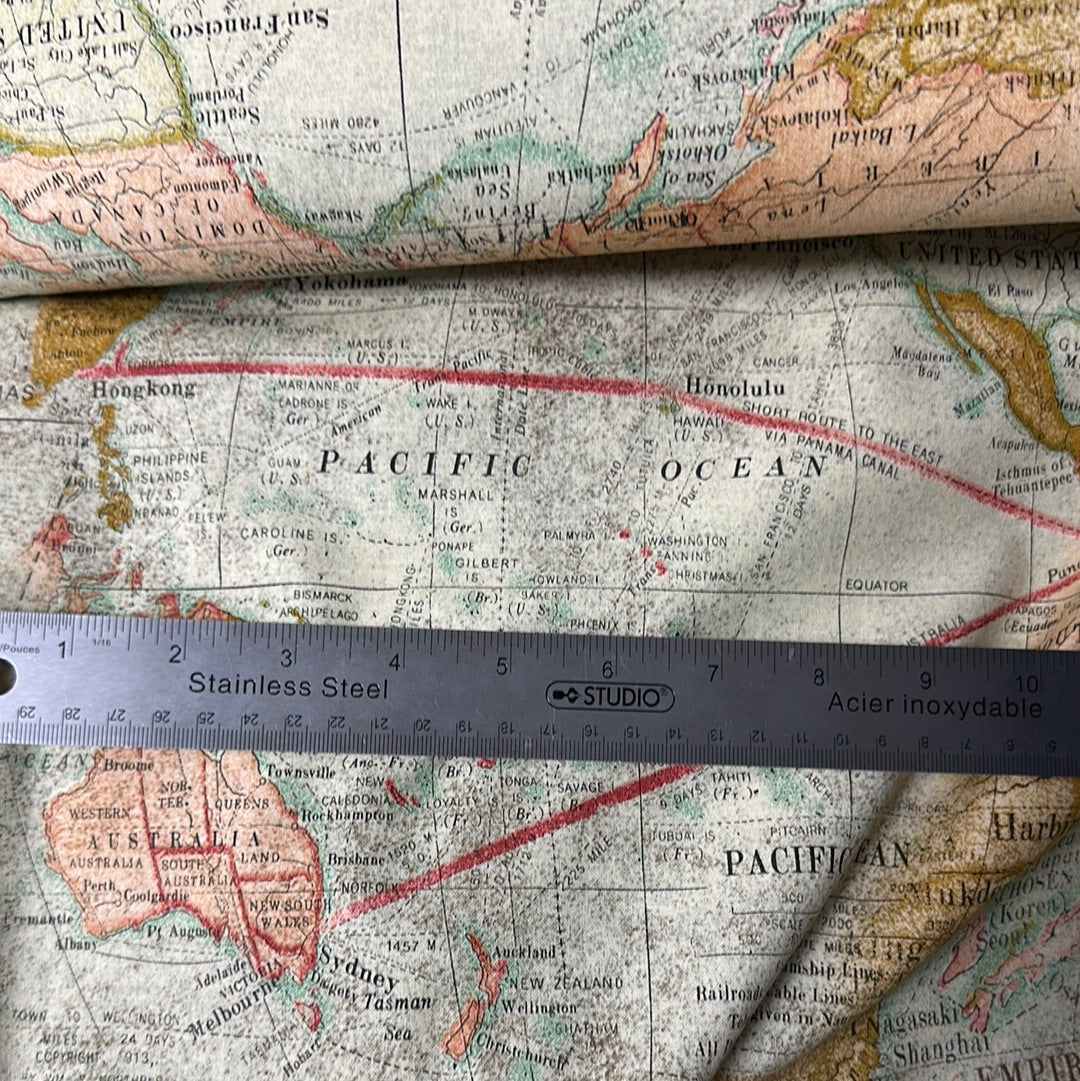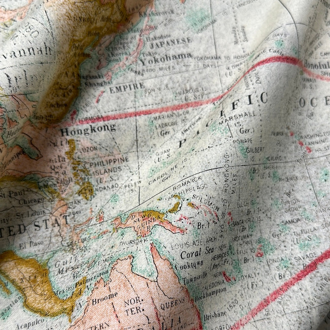 This fabric belongs to the Foundations collection by Tim Holtz for Free Spirit Fabrics and features vintage map elements.