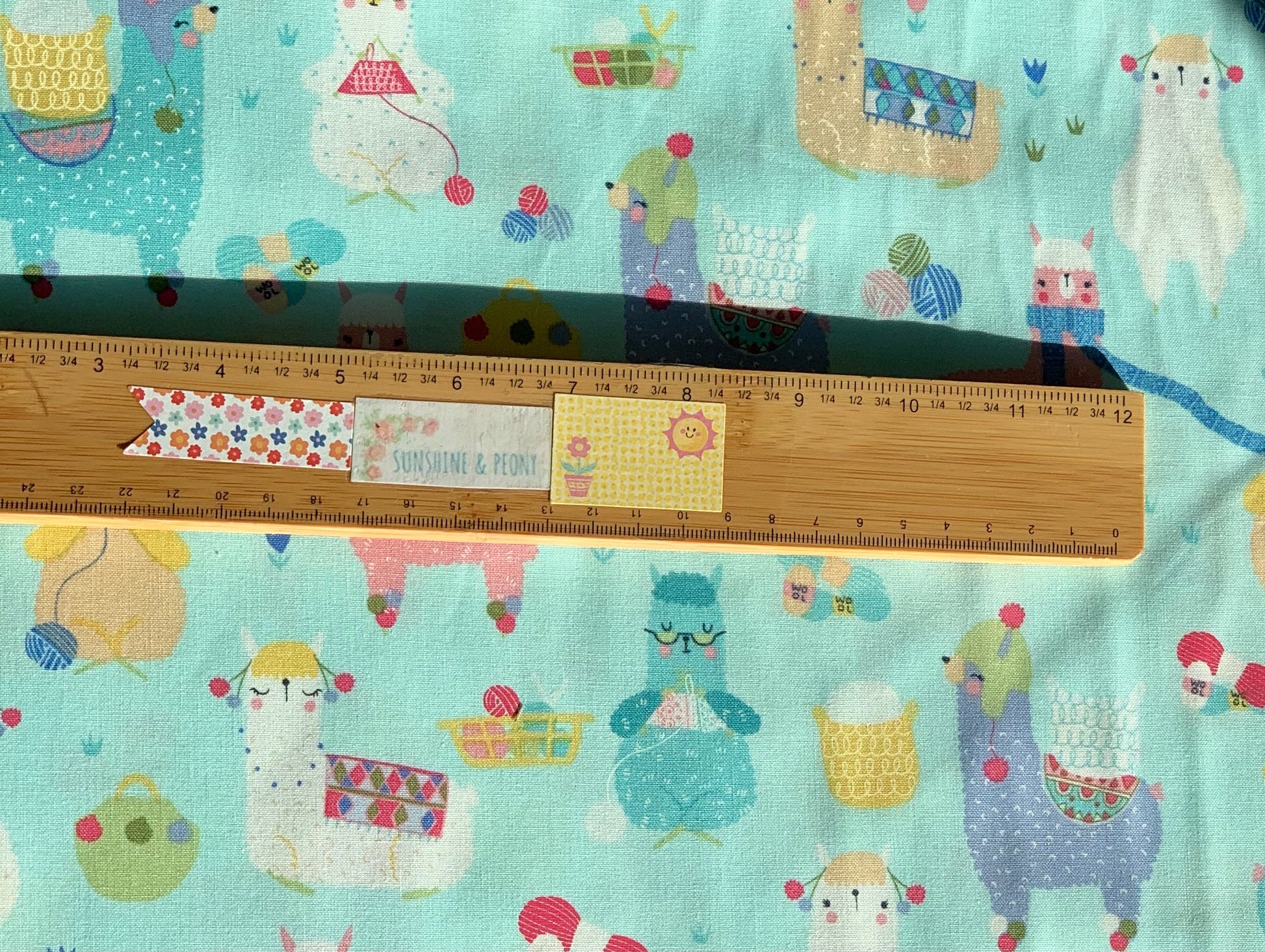 Last cut from bolt approx. 15.5” x width of fabric - Timeless Treasures - Aqua Knitting Alpacas